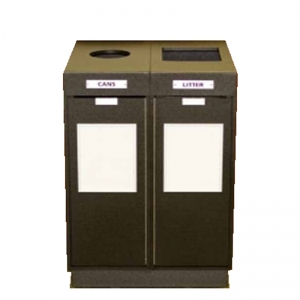 • The hinged lid eases the access to the liners inside the receptacle. Those liners are made with 100% recycled plastic material.