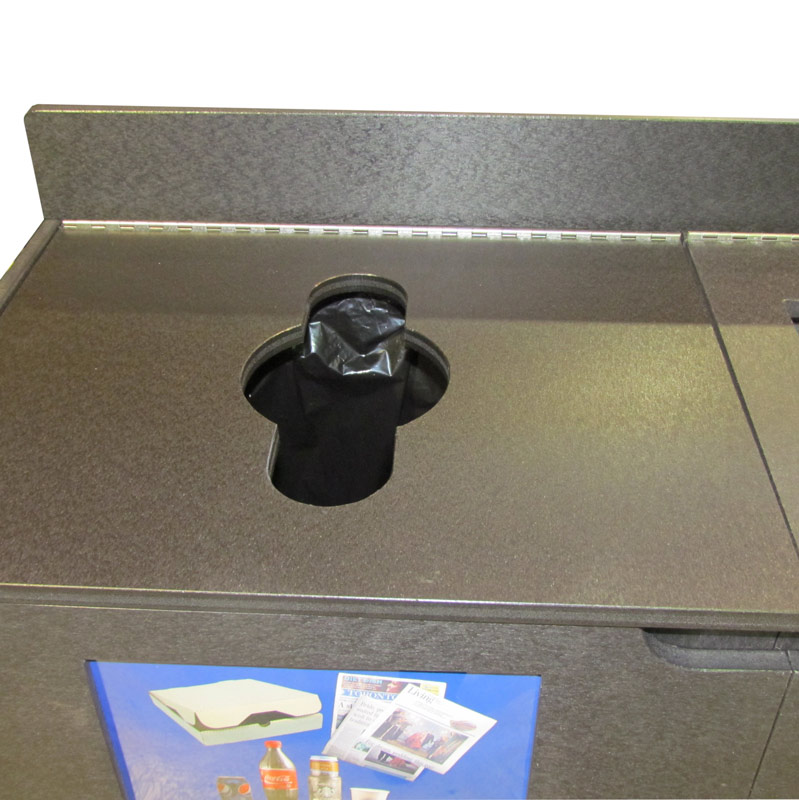 - Hinged lid to get access to the recycled plastic liner inside.