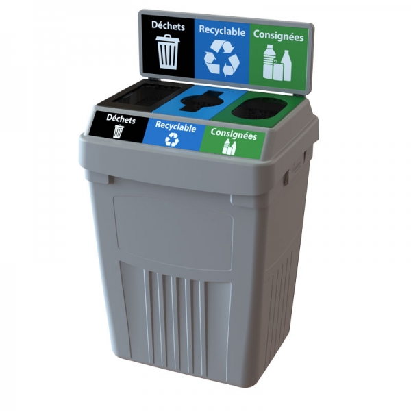 Sommaire du ProduitStation FlexE, 3 voies de capacité de 63 litres - 16.7 gallons US. Description du ProduitDécouvrez la station de déchets et recyclage 3 voies FlexE. Cette station de la gamme FLEX E™ est sans pareil! Sa technologie unique TRANSITION® vous offre une station à 3 voies, le tout compris dans une seule unité!